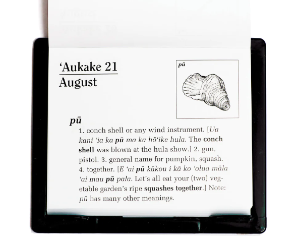 Learn a new Hawaiian word every day with this illustrated desk calendar that includes definitions, sample sentences, related words and phrases, and song references.