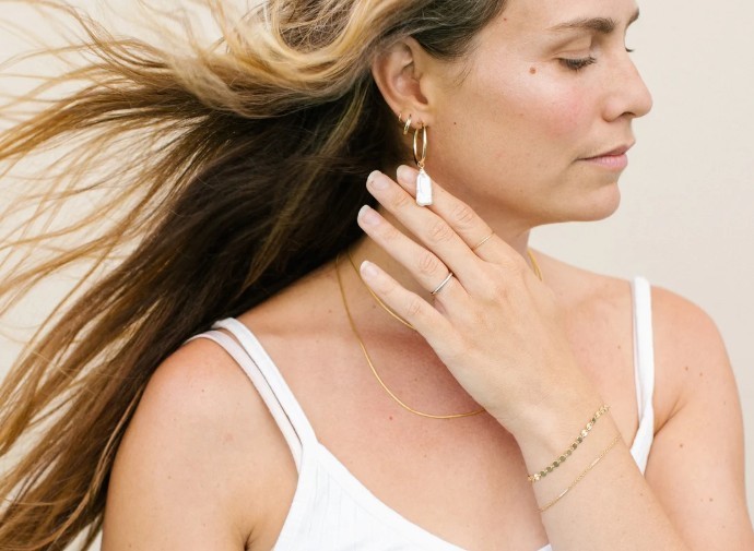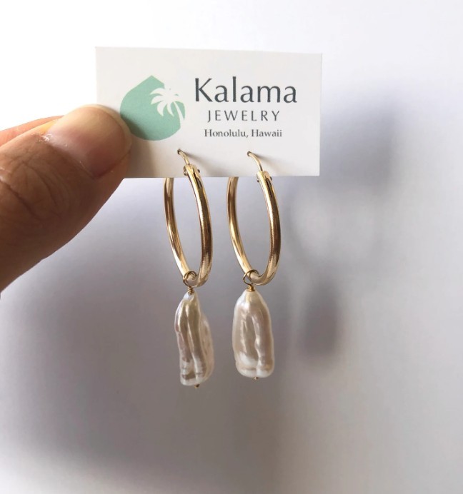 Home / Earrings / Baroque Pearl Hoop - Large Rectangle