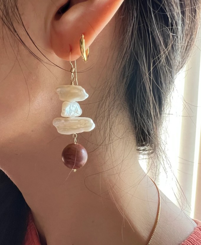 Keshi Pearl and Wood // 14k GF