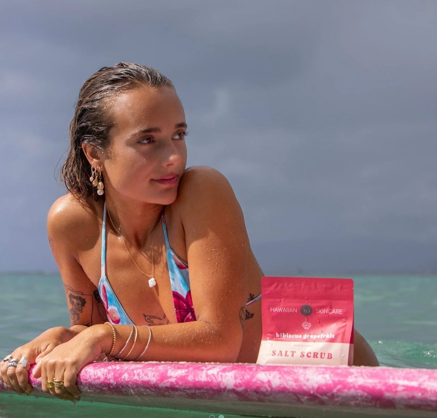 'Ili Srub's Hibiscus Grapefruit Salt Scrub is a bright, mood-boosting island moment wrapped in a luxe spa ritual. Fine Hawaiian sea salt gently buffs the skin to a silky finish, while hibiscus adds a subtle, natural glow. A burst of pink grapefruit lifts your senses like a breezy morning on the coast, and coconut oil leaves your skin soft, hydrated, and touchably smooth. It’s polished, radiant, vacation-level skin — no boarding pass required, just your shower and a little self-care energy.