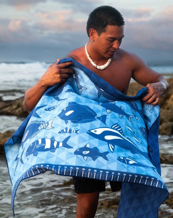 Fish responsibly and in style. This lightweight, sand-resistant microfiber towel features original artwork by a Hawai'i artist and includes a ruler* to instantly measure your catch.